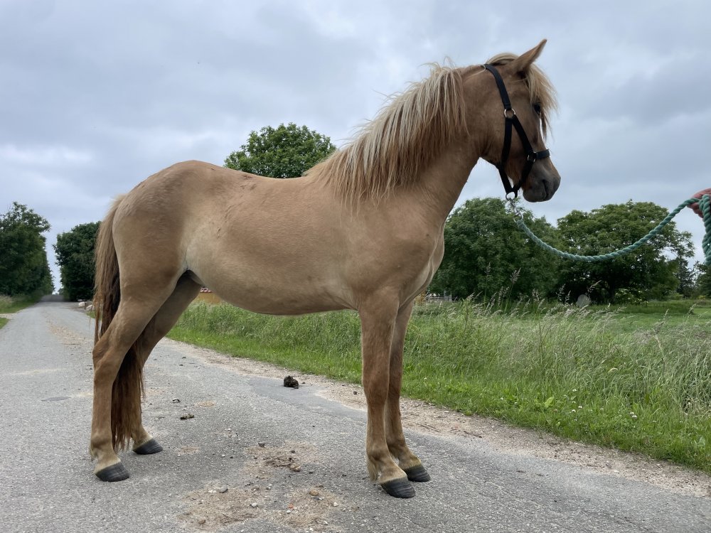 Står pænt ved smed, kan alt det basale, aldersvarende trænet for en 1 års . (Kan også gå i trailer)