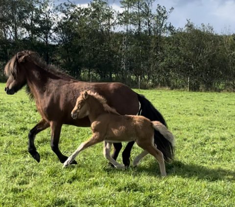 Hun er 5 gænger med masser af rummelig tølt og trav. Hun er meget sporty og elegant ! Hun har de længste ben ud af dem vi har avlet i år!