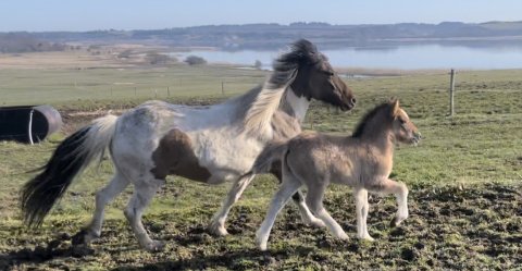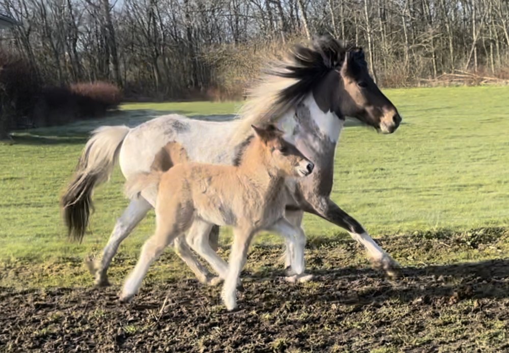Faren er avlsmatadoren Glotti fra Sveinatungu med hele 8.97 for ridning . En af de højest ridebedømte hingste vi har i avlen her hjemme i dk ! han avler masser af power og gangarter langt over middel.