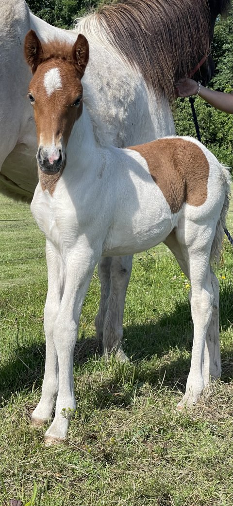 Meget smuk og velrejst 5 gænger hingsteføl fra 2024. Begge hans forældre er utrolig høje. Omkring 149 i stang begge to .
